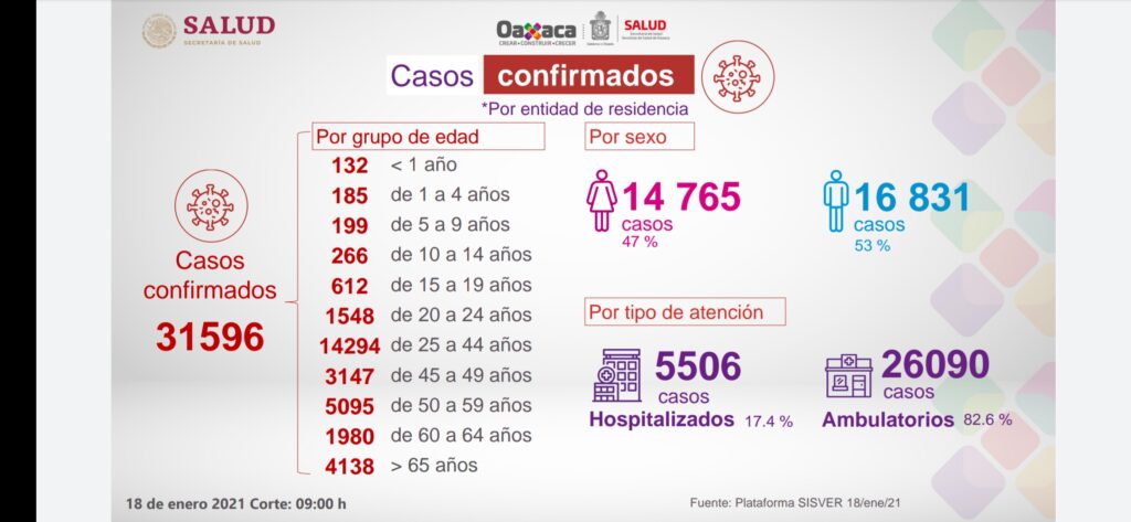 🔴 Así, Oaxaca llega a contar 31,596 contagios y 2,293 decesos.
