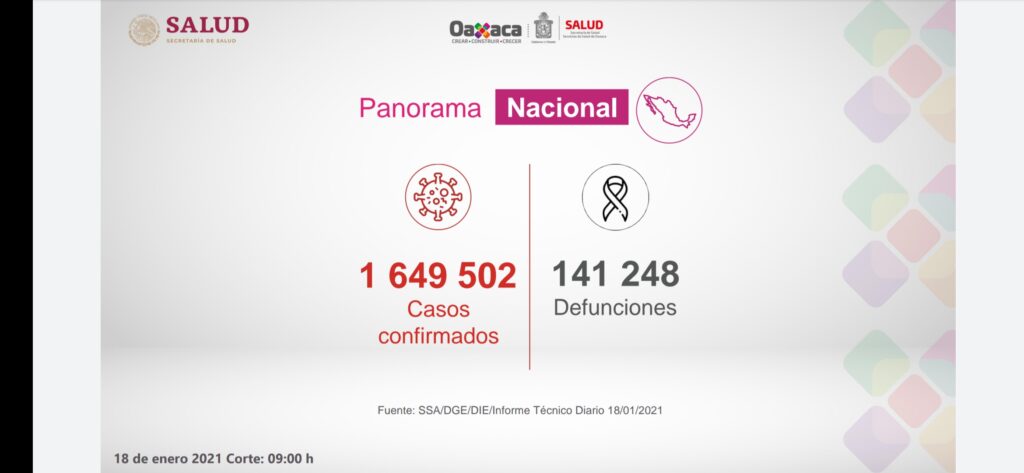 ✝️ En el país se han registrado al día de hoy 1,649,502 infectados y 141,248 fallecidos por la Covid. Pese a ello el Índice de Letalidad Nacional bajó a 8.56%, mientras que en Oaxaca también descendió a 7.25%