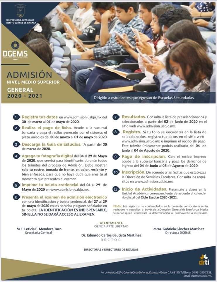 A quienes deseen ingresar a la Universidad Autónoma “Benito Juárez” de Oaxaca, se les informa que ya está abierta la convocatoria para el ciclo escolar 2020-2021 en la siguiente dirección