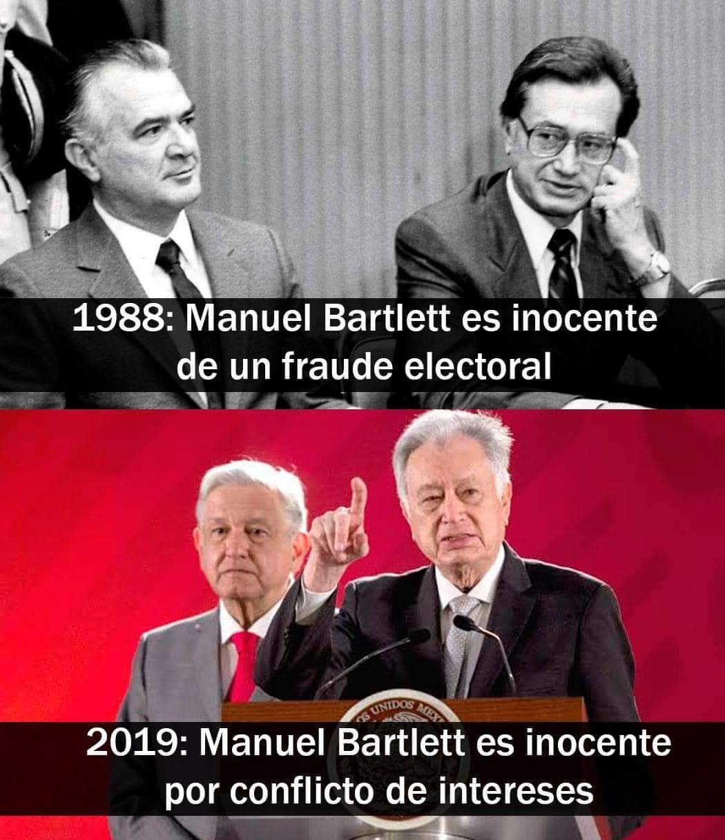 Manuel Bartlett Díaz, actual titular de la CFE (Comisión Federal de Electricidad) ha sido señalado por corrupción en el libro de AMLO Entre la historia y la Esperanza publicado en 1995 habla sobre sus «tranzas» inmobiliarias.