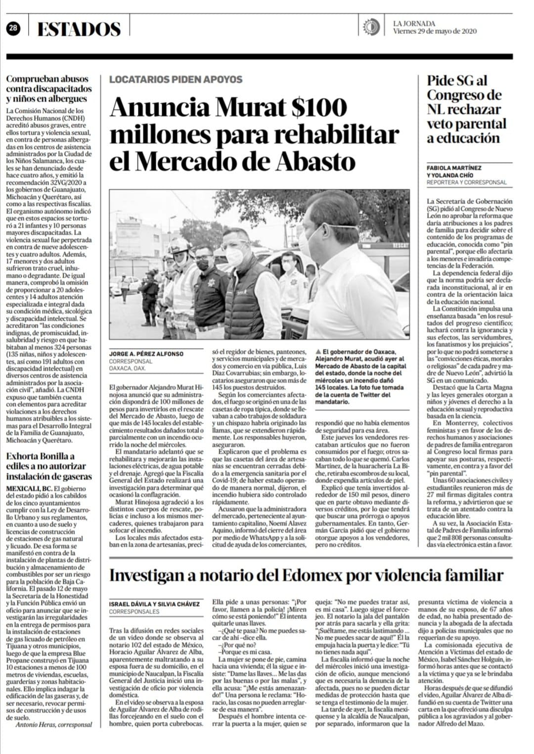 El gobernador Alejandro Murat Hinojosa acudió a la Central de Abasto, lugar en donde la noche de este miércoles 27 de mayo se registró un incendio que afectó a alrededor de 150 locales comerciales y que afortunadamente no dejó pérdida de vidas humanas.