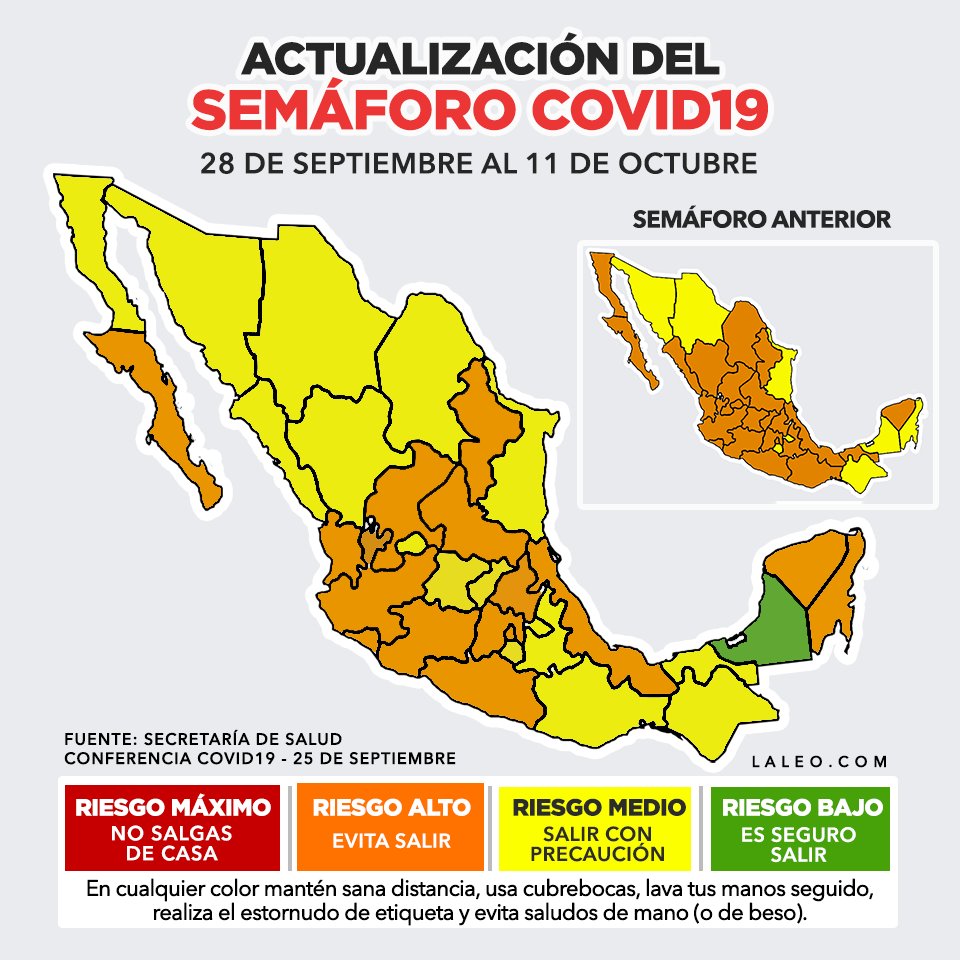 En tanto se informó que a partir del próximo lunes 28 de septiembre, #Oaxaca regresará a semáforo epidemiológico color amarillo, lo que significa riesgo moderado.