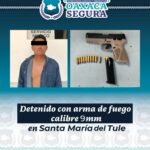 Mientras que, en San Miguel Panixtlahuaca, se identificó a E.C.M.M. de 28 años; con un arma de fuego tipo escuadra, marca Ruger Long Rifle, calibre 22 mm, matrícula 11-96906 y un cargador metálico abastecido con siete cartuchos útiles del mismo calibre.