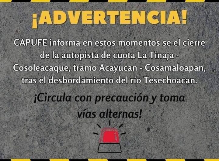 ⛔️⚠️| #Nacional | #Veracruz | Cerrada autopista #Tinaja- #Cosoleacaque, desbordamiento del Rio «#Tesechoacan” #CAPUFE informa que debido...