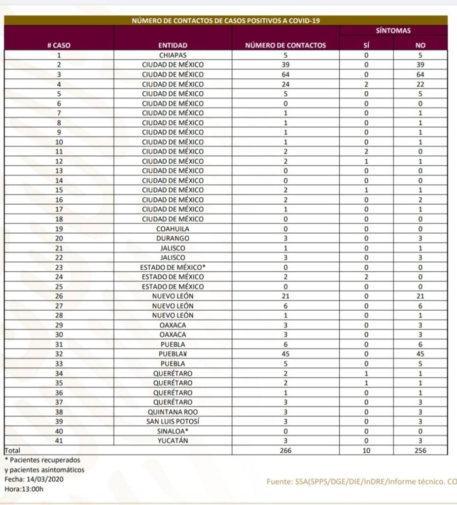 De acuerdo a los datos mostrados en la Ciudad de México se registran 17 casos, en Querétaro son 4 en el estado de México son 3, Puebla 3, Nuevo León 3, Oaxaca 2, Jalisco 2, Coahuila 1, Durango 1, Chiapas1, Quintana Roo 1, San Luis Potosí 1, Sinaloa 1 y Yucatán 1.