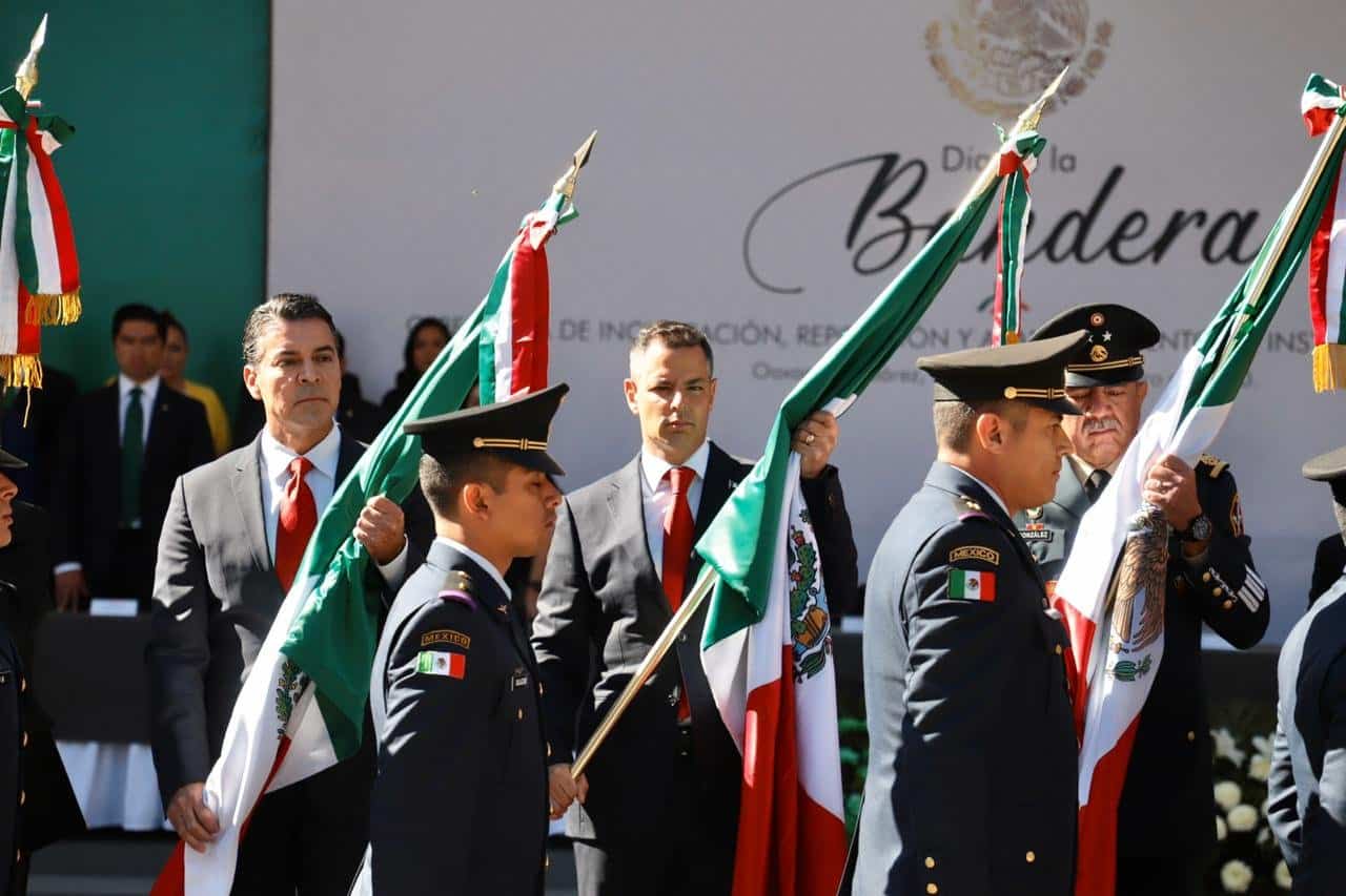 En esta ceremonia cívica donde asistieron personal directivo, docente, administrativo y estudiantes de escuelas de educación básica, así como representantes de los tres Poderes del Estado se atestiguó la incineración de tres banderas, y la reposición y abanderamiento de 37 instituciones educativas de la entidad.