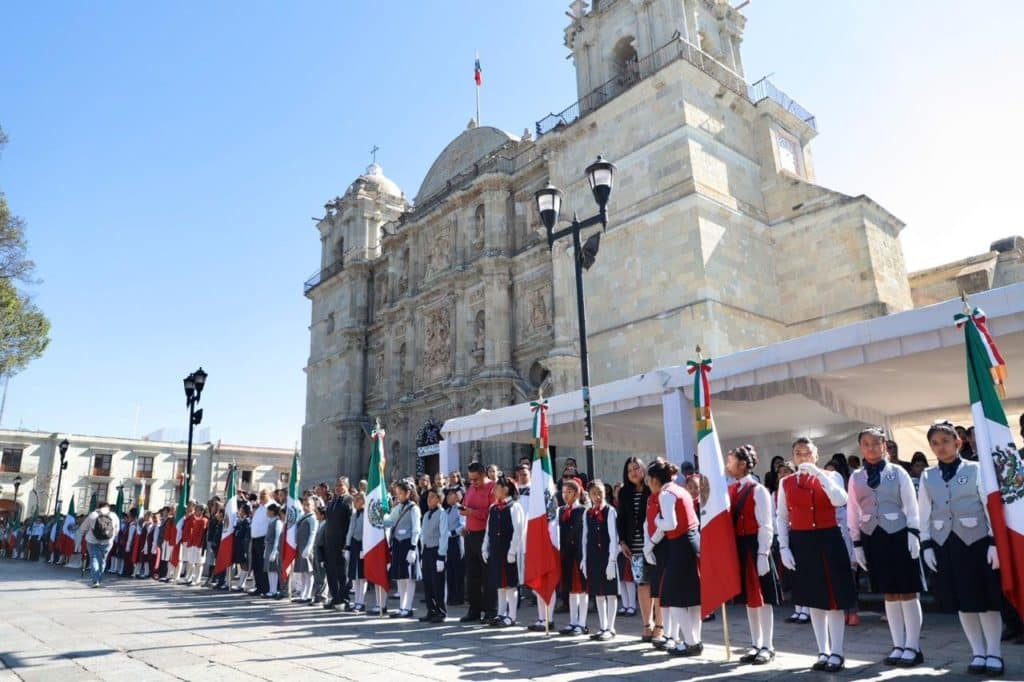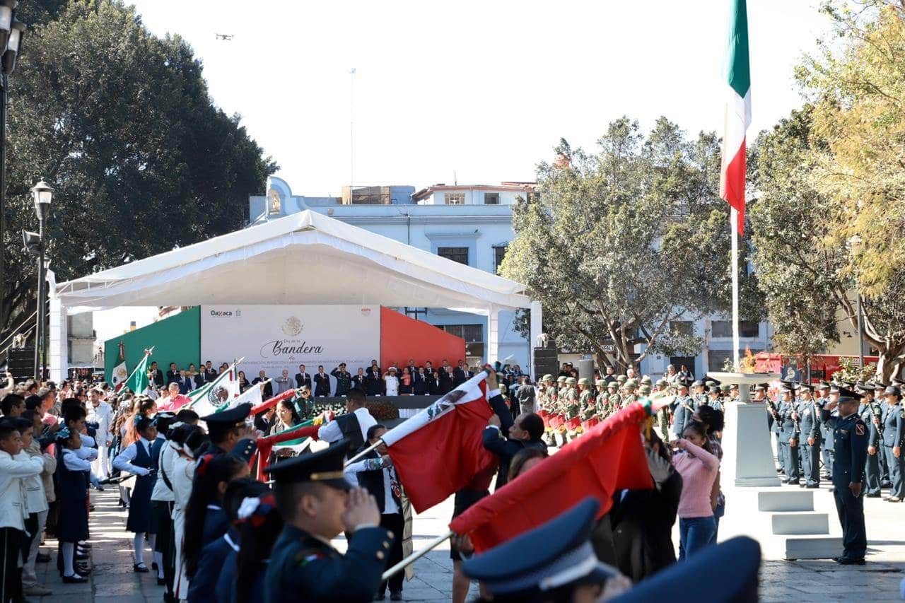 “En ustedes, las niñas y los niños, las mujeres y los hombres jóvenes de Oaxaca, del México de hoy, nuestra Bandera cobra el más vigoroso de sus significados. Cada generación es diferente a la anterior, y los retos de la de ustedes podrán afrontarse más exitosamente si se comprende a cabalidad lo que la Bandera representa como símbolo y como inspiración”, afirmó.