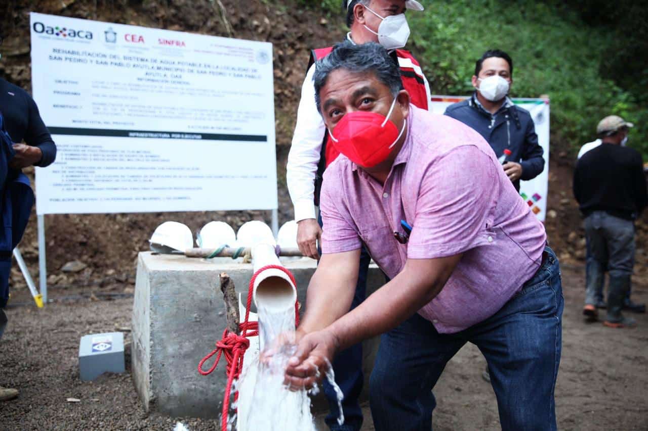 “Hoy es un día histórico, porque pudimos construir en familia, con el Cabildo, el Presidente Municipal, el Comité de Bienes Comunales y toda la población que aportó su tequio, así como el terreno, esta fuente independiente de agua, que será el abasto permanente de San Pedro y San Pablo Ayutla”, señaló el Gobernador.