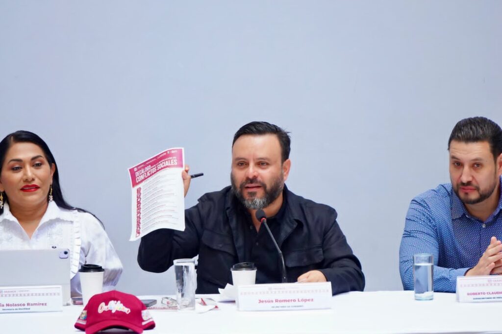 Oaxaca de Juárez, Oax. 8 de mayo de 2025.- En conferencia de prensa del Gabinete de Seguridad, el titular de la Secretaría de Gobierno (Sego), Jesús Romero López dio a conocer que, durante el mes de abril, los bloqueos carreteros y toma de dependencias, disminuyó de manera significativa en comparación a los ocurridos en años anteriores.
