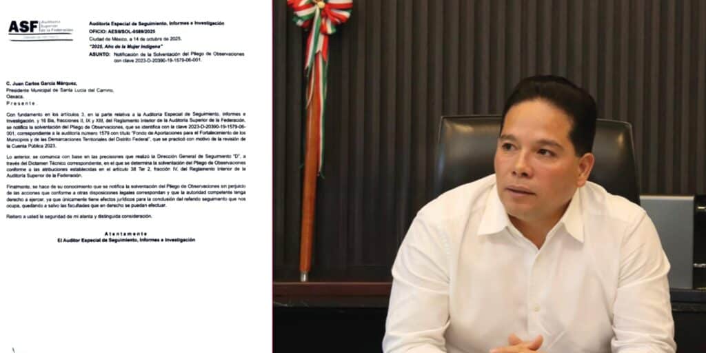 La Auditoría Superior de la Federación (ASF) notificó al H. Ayuntamiento de Santa Lucía del Camino que cumplió con la auditoría federal realizada y con ello confirman que los recursos federales ejercidos durante la administración del edil Juan Carlos García Márquez fueron utilizados de manera eficaz y con transparencia.