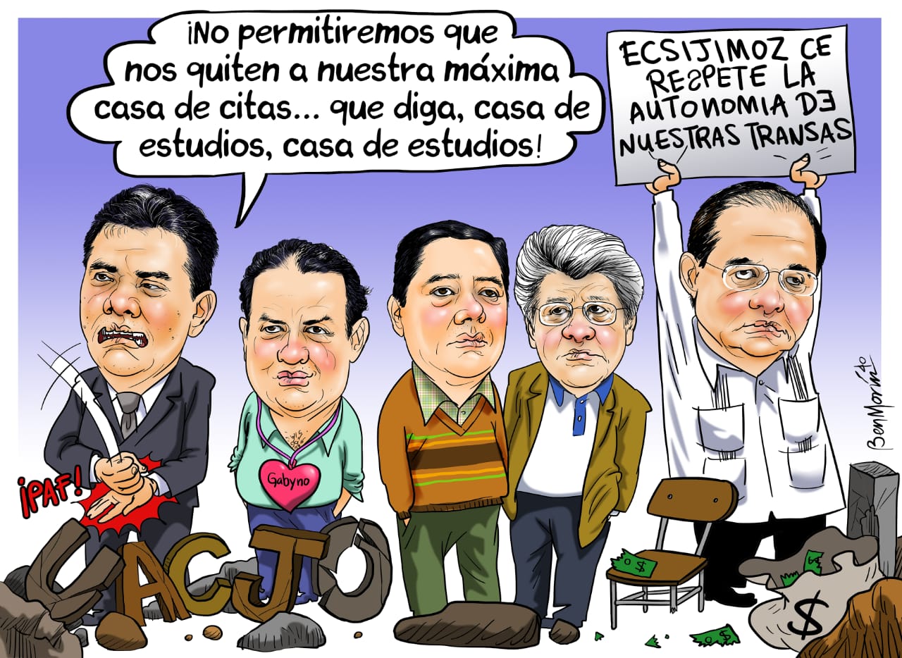 No es necesario meterse muy a fondo en la UACJO (Universidad Autónoma Cleptómana Jorobada de Oajacalifornia) ni hacer profundas y extenuantes investigaciones para descubrir el marranero. Desde la calle, a través de las rejas metálicas, todo queda expuesto, explícito y público: se puede ver la desolación, el saqueo, las facultades y el deportivo sobre la Avenida Universitaria cayéndose a pedazos. No hubo mantenimiento ni se amplió ni modernizó nada en los años y años en que, eso sí, los rectores han erigido sus riquezas, sus amplias y lujosas casas, sus gordas (y las de sus prestanombres) cuentas bancarias.