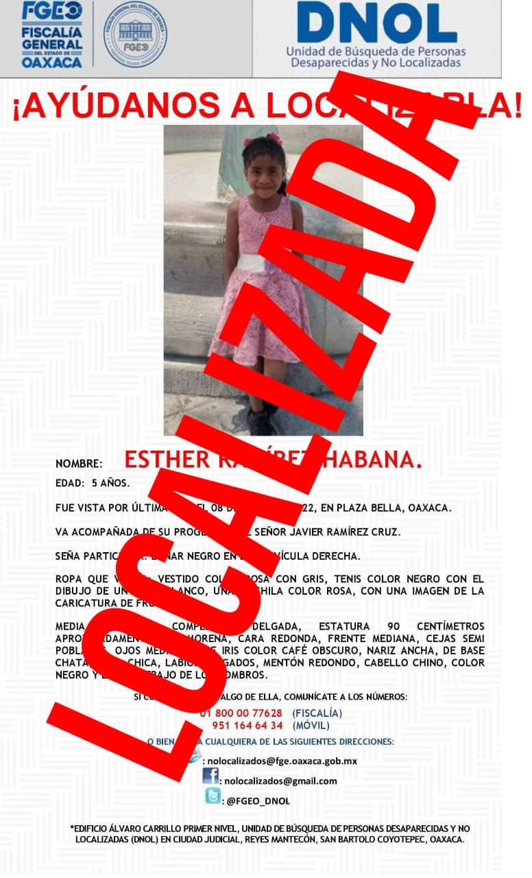Asimismo, se localizó a Javier Ramírez Cruz y sus hijas menores de edad identificadas como Esther