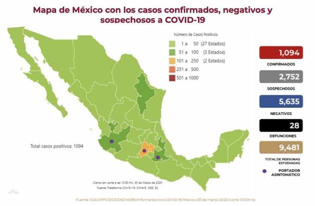 En México suman hasta el corte de hoy un total de mil 94 casos positivos de coronavirus Covid-19.