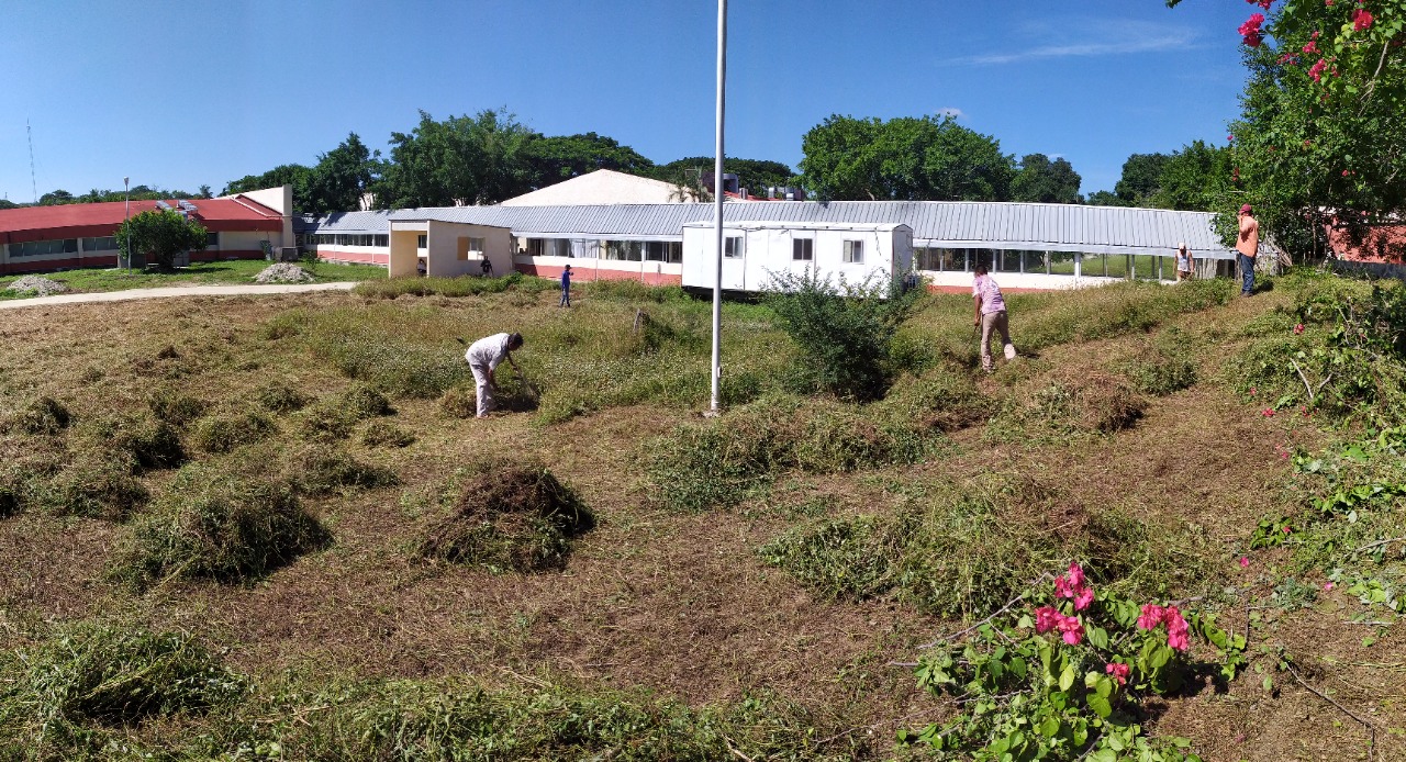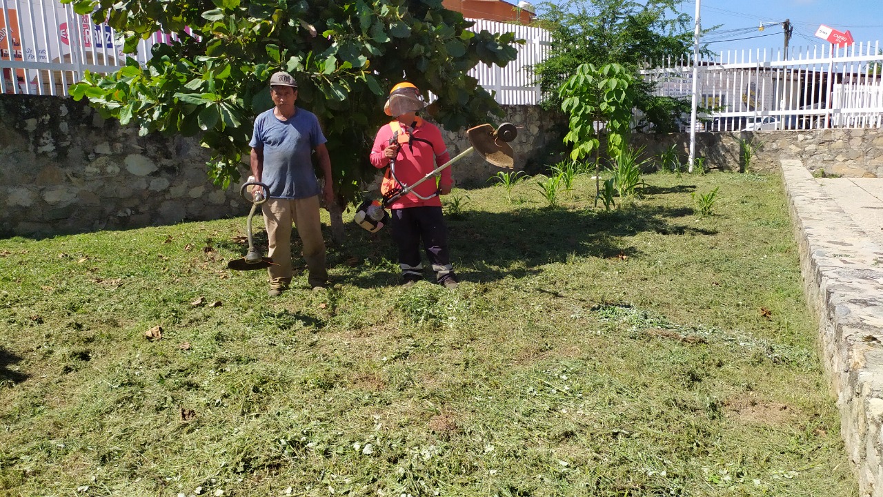 Estas labores complementan los trabajos de jardinería que se realizan como apoyo a esta institución por parte de personal municipal, la cuales buscan evitar la proliferación de mosquitos y mantener limpios los espacios públicos, como parte de la imagen urbana.