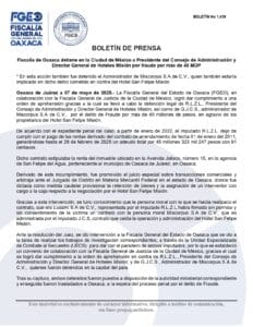 Fiscalía de Oaxaca detiene en la Ciudad de México a Presidente del Consejo de Administración y Director General de Hoteles Misión por fraude por más de 45 MDP