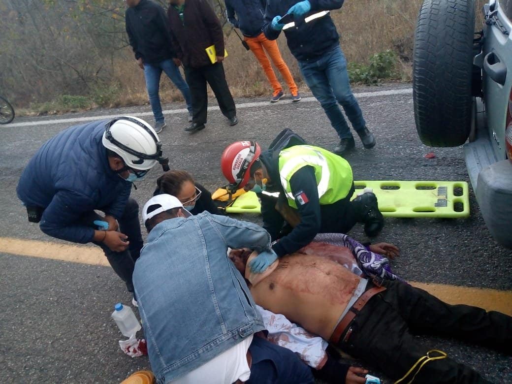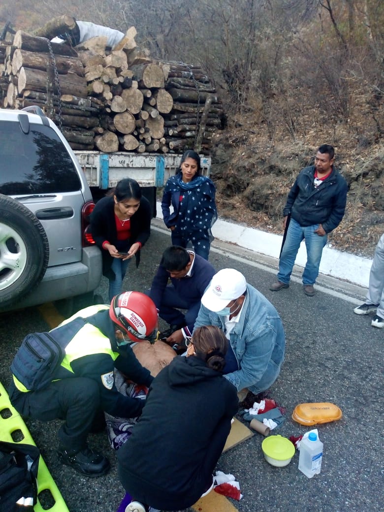 Choque carretera a ixtlan antes de llegar al estudiante un 58 trasladado al ISSSTE por la alfa de Tlalixtac .. presentando T/C moderado un escape cráneo abarcando de región frontal a parietal derecho