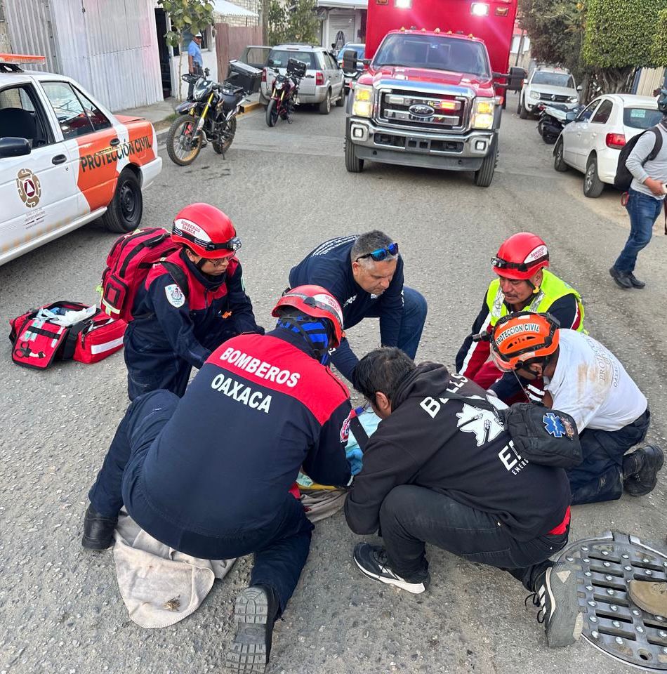 De manera coordinada con Protección Civil de Oaxaca de Juárez, auxiliaron al masculino de aproximadamente 40 años, en situación de calle, sobre la vía Popocatépetl 221; quien cayó a 2 metros de profundidad en un espacio de 1 metro de diámetro.