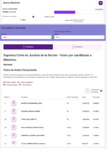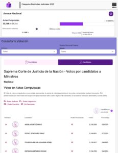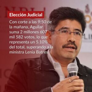 Con un total de 2 millones 607 mil 582 votos, lo que representa el 5.10% del total, Aguilar Ortiz se coloca por delante de la ministra Lenia Batres, quien suma 2 millones 471 mil 625 sufragios. De confirmarse el resultado, sería la primera vez que un abogado indígena ocupe la presidencia del máximo órgano judicial del país.