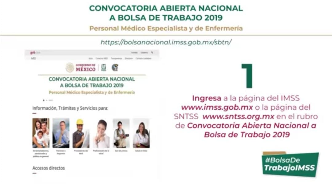 El Instituto Mexicano del Seguro Social (IMSS) lanzó la convocatoria abierta dirigida a médicos y enfermeras para ocupar un total de ocho mil 704 plazas, en tanto que para el año 2020, señaló que se crearán otras 10 mil 794 con el fin de cubrir el déficit de personal médico en el país.
