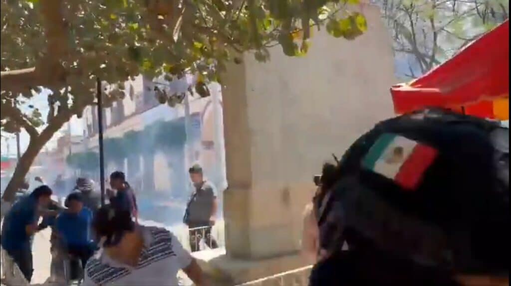 . En video/ Hoy 12 de marzo de 2025, por instrucciones del Presidente Municipal César Figueroa Jiménez alias «el Chivo», un grupo de comerciantes fue brutalmente atacado, resultando afectados comerciantes y vecinos del lugar, así como oriundos de la cabecera municipal que respiraron gas lacrimogeno, entre los afectados se encuentran niños, mujeres y ancianos.