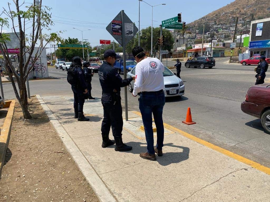 Para realizar esta actividad sin arriesgar la salud de las y los elementos, los SSO y la Secretaría de Seguridad Pública de Oaxaca (SSPO) les entregan cubrebocas y una careta, así como la instrucción de mantener una sana distancia con la ciudadanía y el uso continuo de gel antibacterial.