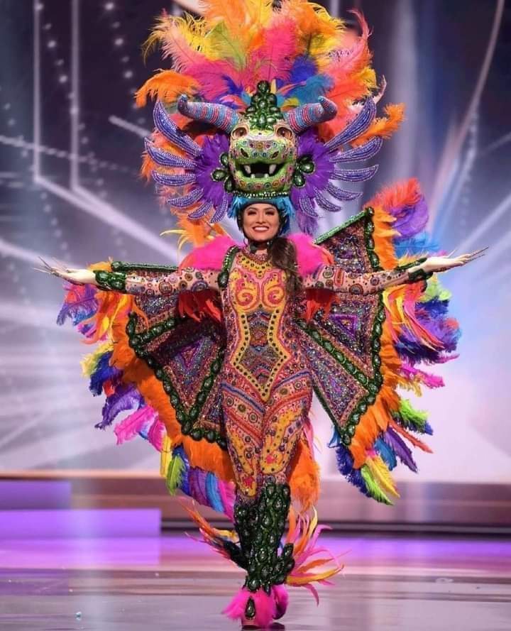 Su vestimenta colorida inspirada en los alebrijes Oaxaqueños, en la categoría de trajes típicos.