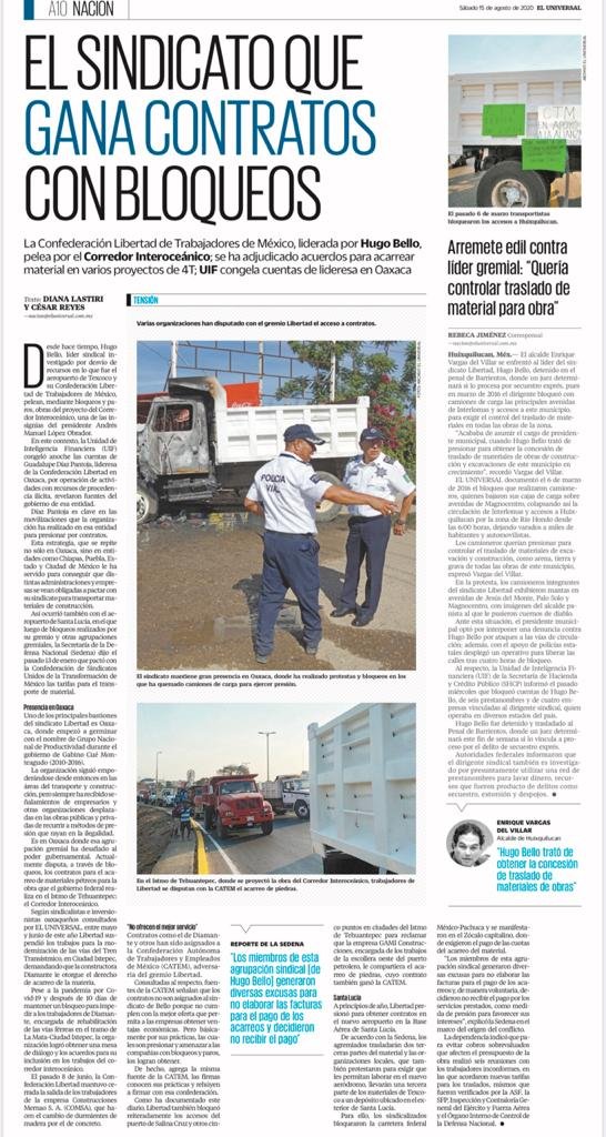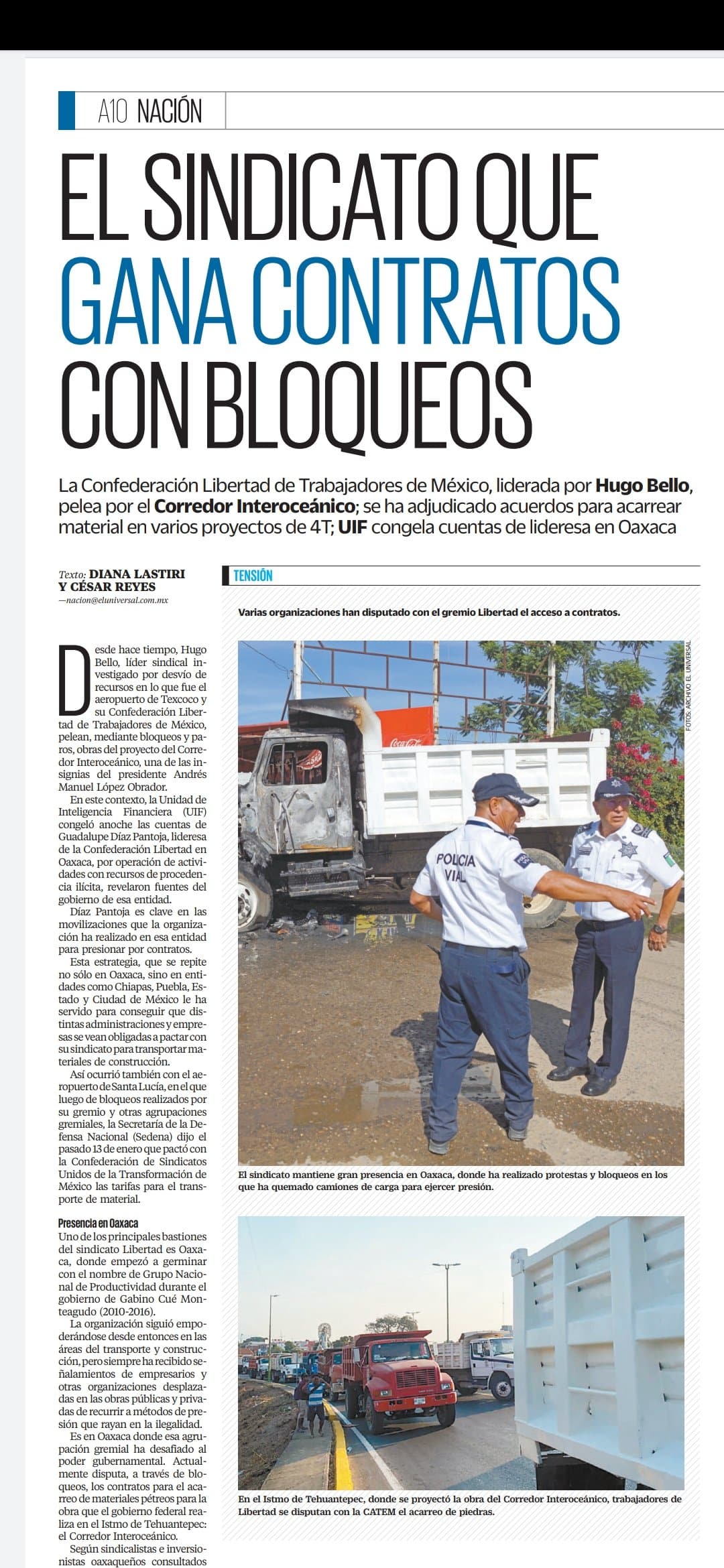La noche de este viernes, la Unidad de Inteligencia Financiera (UIF) congeló las cuentas bancarias de Guadalupe Díaz Pantoja, secretaria general sindical de la Confederación “Libertad” de Trabajadores de México (CLTM), para investigar sus probables vínculos con la delincuencia organizada en el estado de Oaxaca.