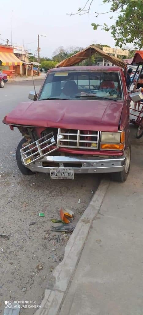 Hoy por la mañana en Palomares chocan la camioneta de Don Che pistola, conocido vecino de esta población, cuando este se encontraba estacionado frente a la tortilleria Aquiahuac, saliendo también afectada una señora que vende atoles y tamales con su triciclo.
