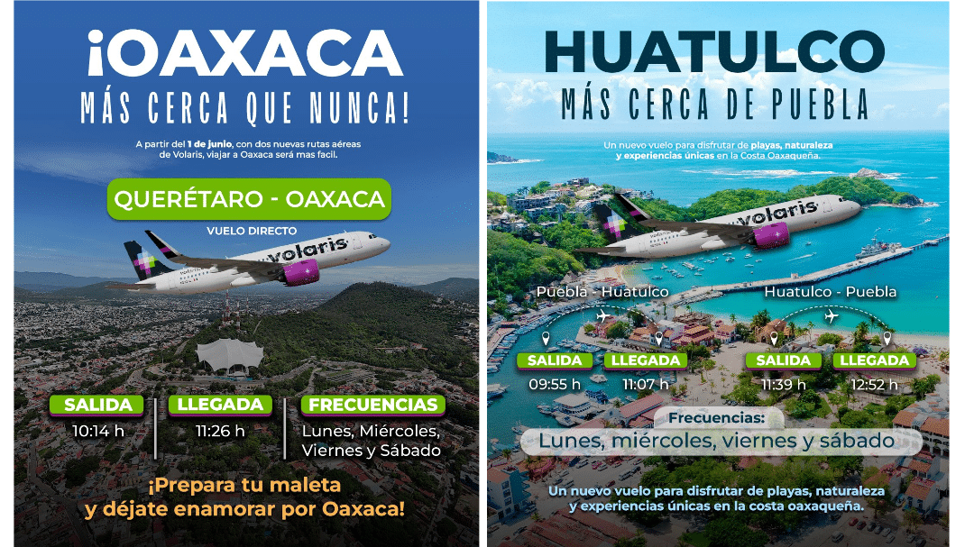 • A partir del 1 de junio, la entidad contará con las nuevas conexiones Querétaro – Oaxaca y Puebla – Huatulco.
