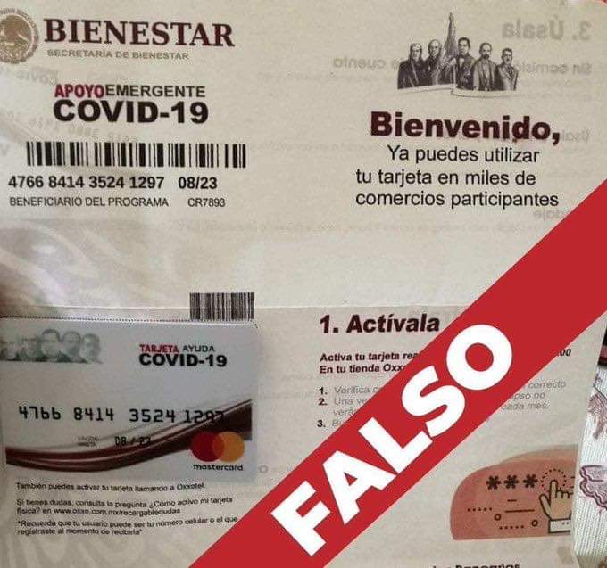 Cuidado con esta modalidad de fraude. Puede ser en esta modalidad como “apoyo” federal o también podría ser disfrazado como apoyo estatal o municipal.