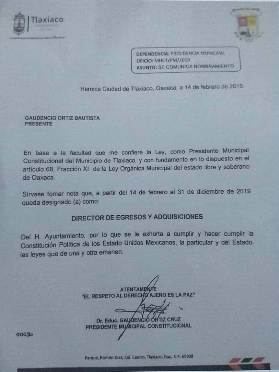 El nepotismo es corrupción y no se debe tolerar en Tlaxiaco. El Profesor Gaudencio Ortiz Cruz se ha negado en 3 ocasiones a transparentar la nómina municipal y en donde su hijo es el actual Director de Adquisiciones y en donde cobra su familia y hasta la comentarista de una radio. La defensa de la legalidad es nuestra fuerza.