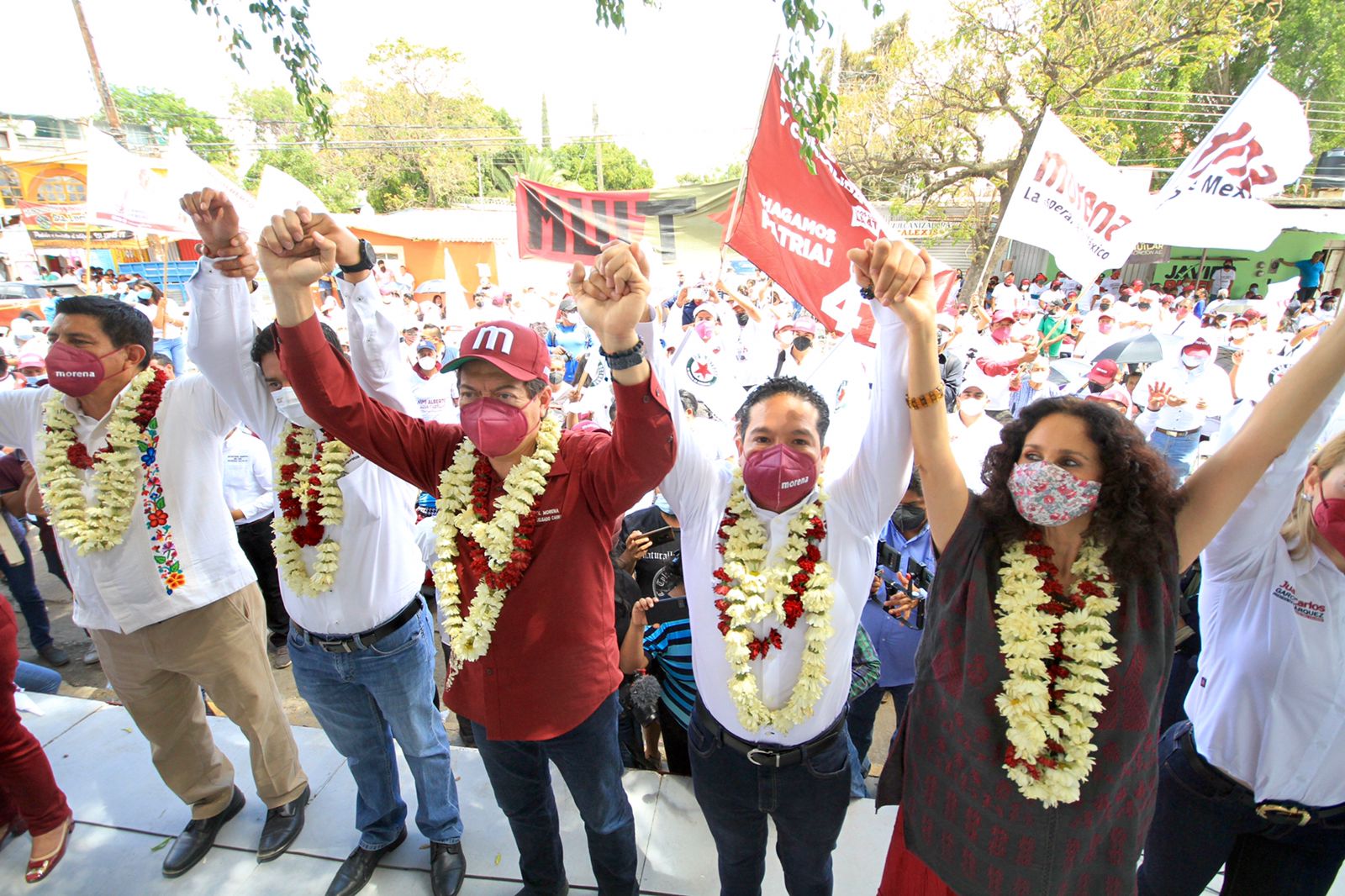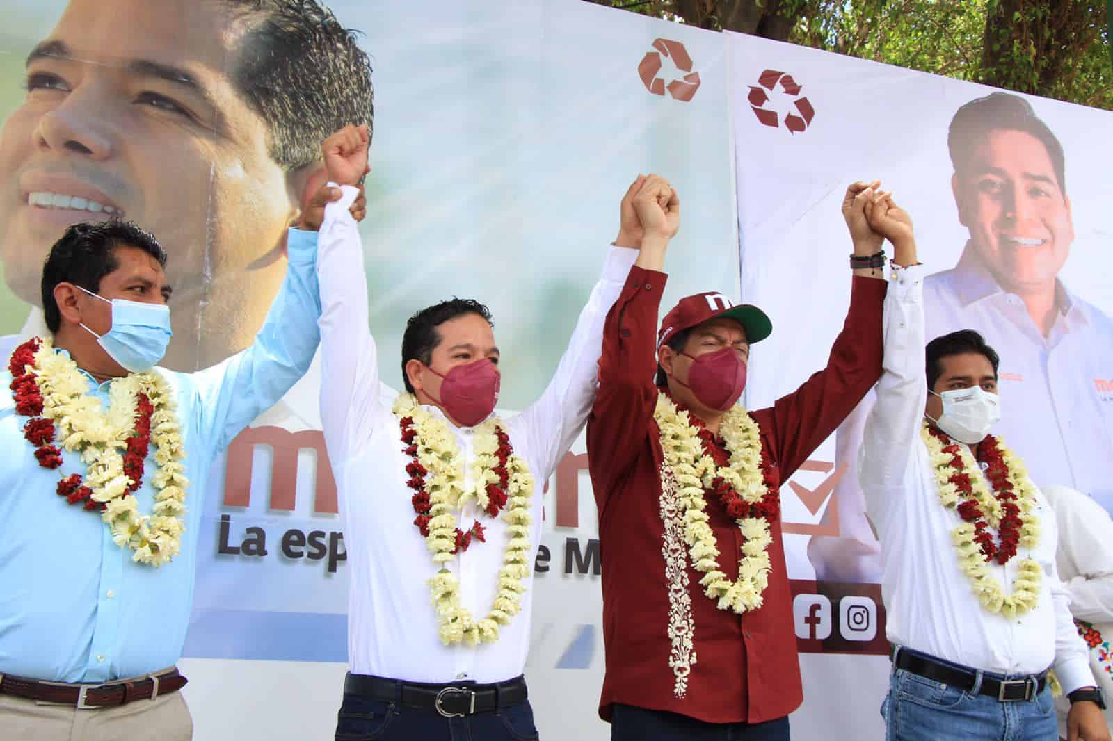 Santa Lucía del Camino a 15 de mayo de 2021.- El presidente nacional del partido Movimiento de Regeneración Nacional (MORENA) Mario Delgado asistió a este municipio para respaldar la campaña de Juan Carlos García Márquez candidato a edil, quien aseguró que será el próximo Presidente Municipal y así continuar con la cuarta transformación.