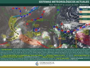 Estas lluvias estarán asociadas a nieblas nocturnas, manteniendo un refrescamiento en las temperaturas, así como norte moderado con rachas fuertes en el tramo La Venta-La Ventosa, propagándose hacia el Golfo de Tehuantepec, donde se espera oleaje elevado.