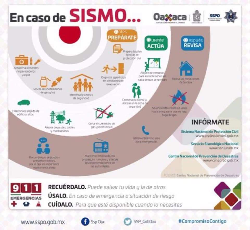 Las delegaciones de la Cuenca del Papaloapan, la Cañada, y Mixteca así como la Unidad de Respuesta Inmediata en la zona de Valles Centrales también activaron sus protocolos por la percepción, del sismo, sin que hasta el momento se hayan registrado daños.