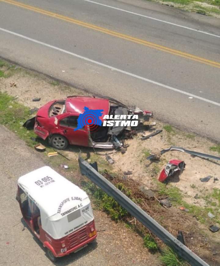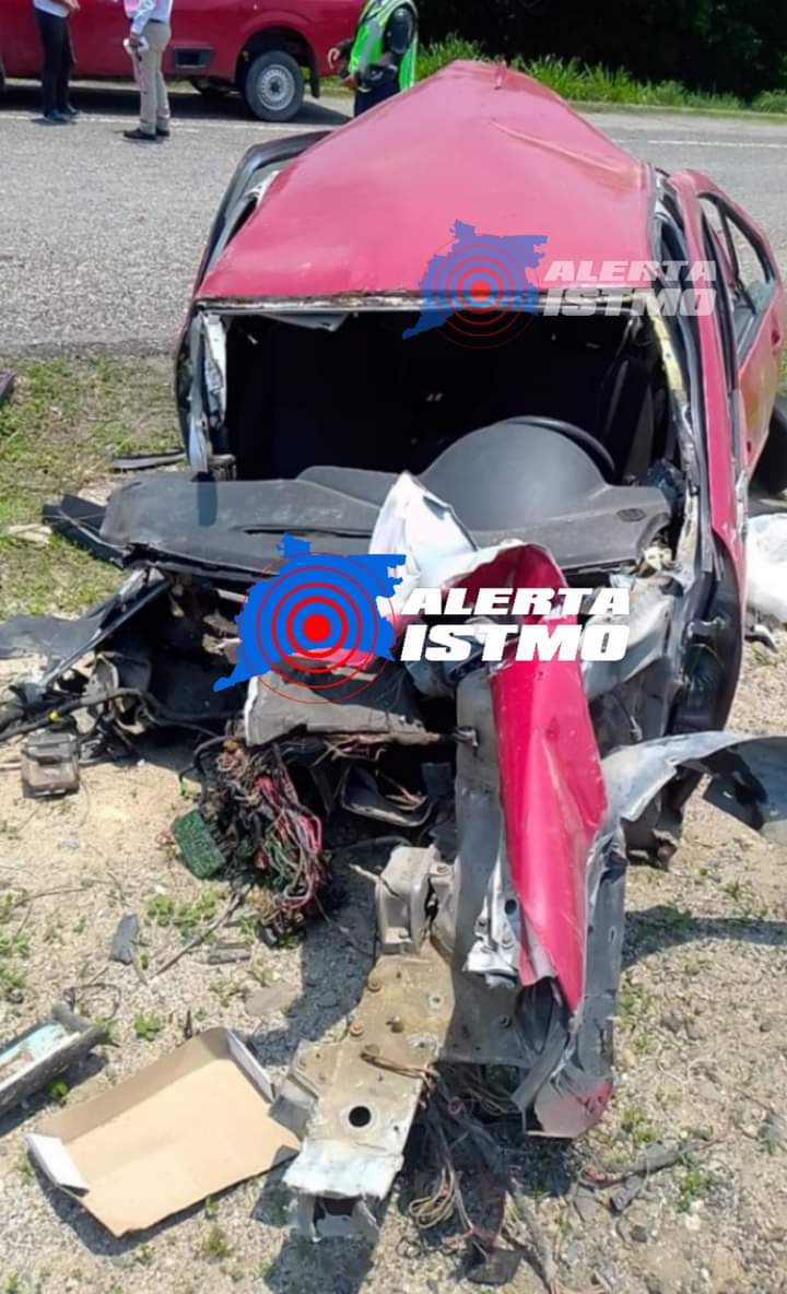 Por el fuerte impacto la unidad se partio en dos, el saldo de cuatro personas lesionadas y un masculino fallecido.