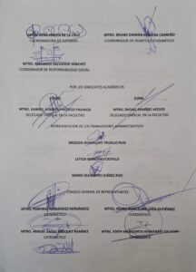 Asimismo, recordaron que el artículo 4 de la misma Ley Orgánica protege la autonomía universitaria, por lo que cualquier intervención externa sería una violación a dicho principio. En ese sentido, los firmantes subrayaron que la comunidad académica, estudiantil y administrativa de la Facultad “representa el 85% del total” y que existen todas las condiciones para realizar una elección democrática en tiempo y forma, como ha ocurrido recientemente en otras facultades.