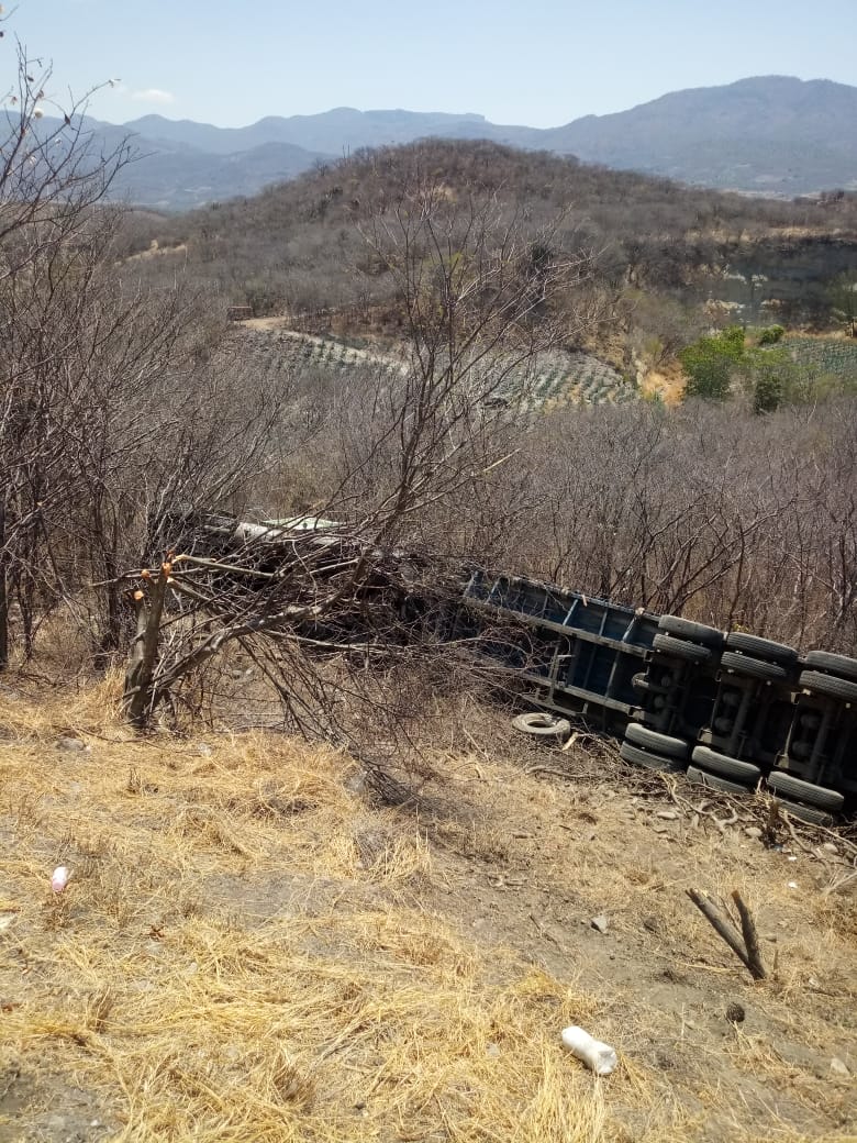 Volcadura de trailer sobre carretera internacional 190 (oaxaca-tehuantepec), a la altura de la poblacion de el camaron yautepec, al parecer solo daños materiales