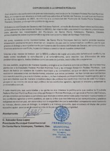 Autoridades municipales de Santa María Yolotepec rechazan la intromisión y el oportunismo político de la diputada Maribel Martínez y del senador Benjamin Robles, mediante un comunicado señalan a quienes durante años permanecieron omisos ante el conflicto que agrario han vivido con Yosondua, y ahora pretenden sacar raja con fines totalmente políticos.